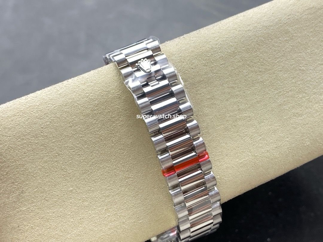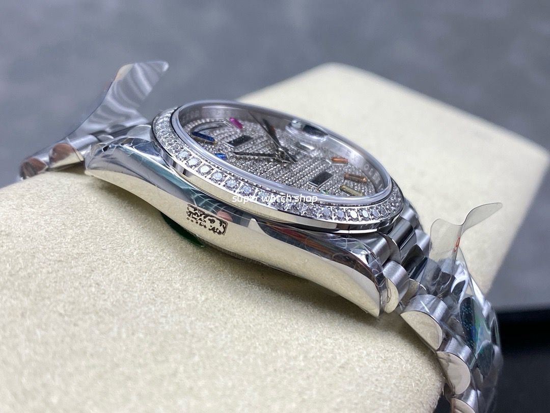 8+ Factory Counterweight Rolex Day-Date 128349RBR-0006 36mm Diamond White Gold Bezel Full White Gold Baguette Diamond White Gold Dial