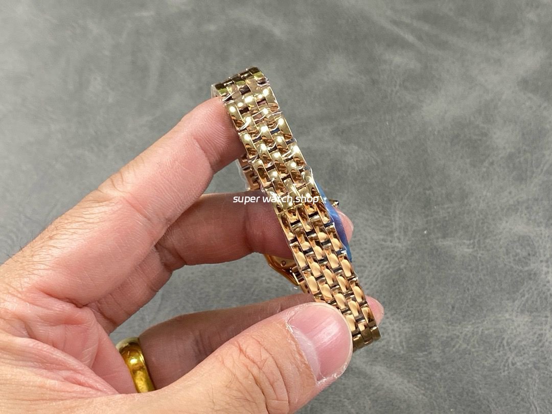 The watch’s stainless steel bracelet undergoes meticulous polishing, resulting in a silky-smooth texture. Each link is precisely crafted to ensure exceptional comfort, fitting snugly around the wrist like a panther gliding across the skin. The bracelet’s distinctive design perfectly complements the elegant curves of the case, enhancing the watch’s overall sophistication and charm.