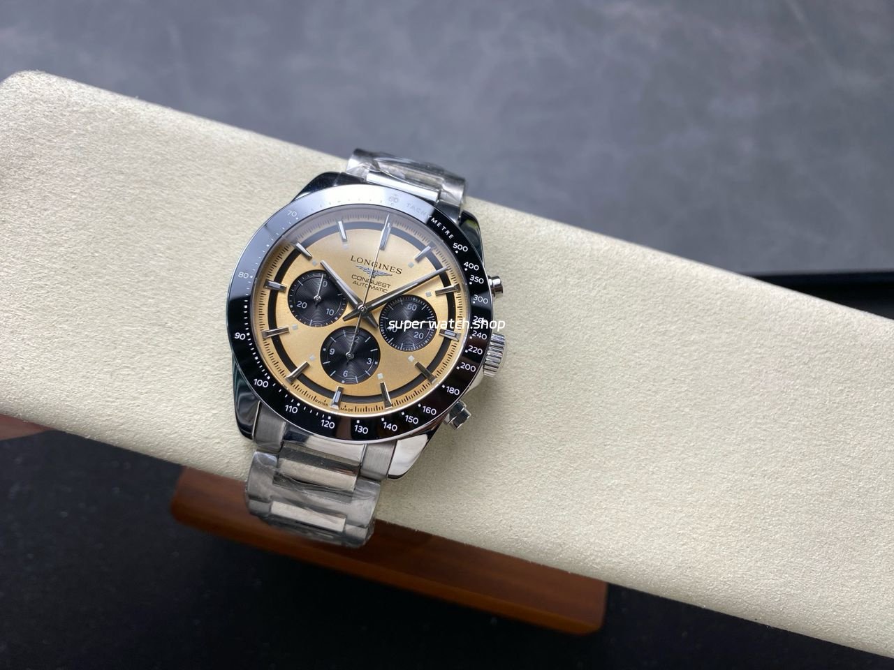 AF Factory Longines Conquest Chronograph L3.835.4.02.6 42mm Full Steel Strap Black Eyes Champagne Dial