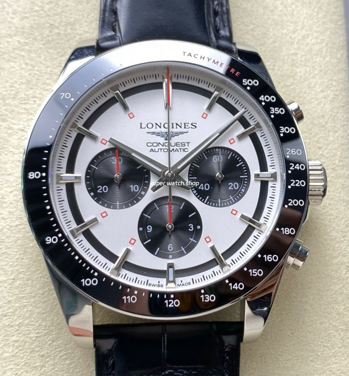AF Factory Longines Conquest Chronograph L3.835.4.72.6 42mm Steel Leather Strap Black Eyes White Dial