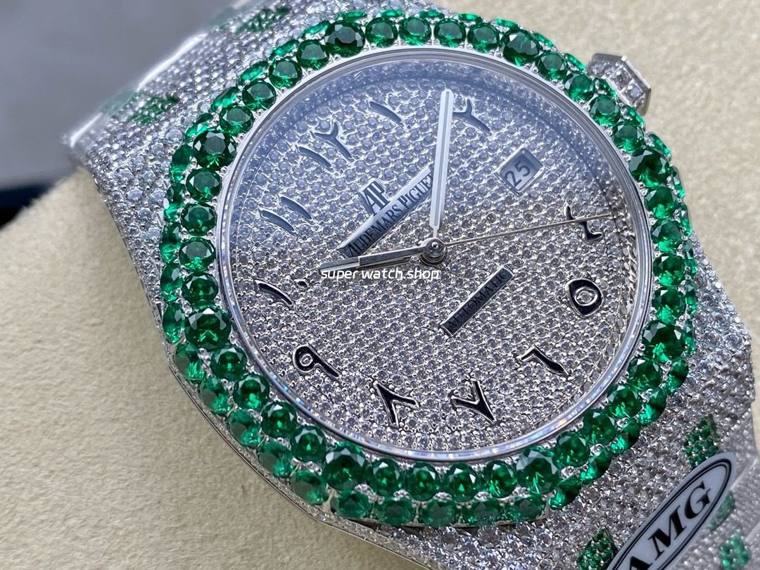 In the world of luxury timepieces, some watches captivate at first glance, radiating an irresistible brilliance. The AP Audemars Piguet Royal Oak 15400 Full Diamond meticulously crafted by AMG Factory, elevates opulence to a whole new level with its exquisite craftsmanship and top-tier diamond setting.