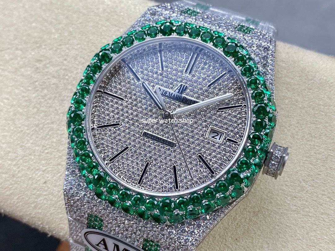 AMG Factory Audemars Piguet Royal Oak Selfwinding 15400 41mm Green Diamond Bezel Full Green White Diamond Steel Diamond Dial