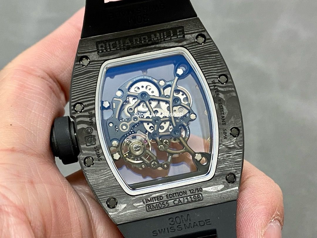 With its feather-light weight, visually authentic skeletonized movement, and limited-edition racing theme, the RM055 V4 Upgrade is a must-have for serious replica collectors and Richard Mille enthusiasts alike.
