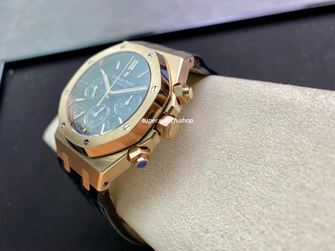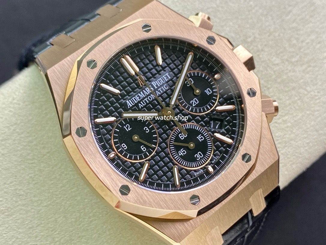 BF Factory Audemars Piguet Royal Oak Chronograph 26240OR.OO.D002CR.02 41mm Rose Gold Leather Strap Black Dial