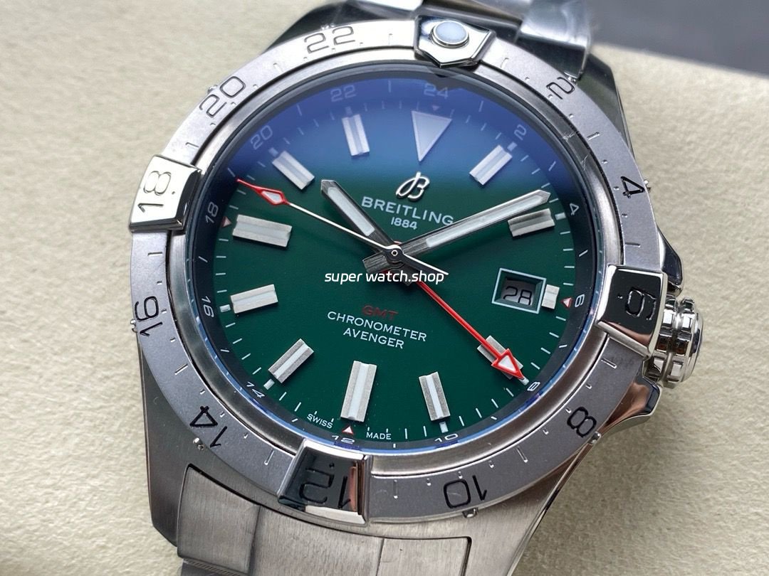 BLS Factory Breitling Avenger 44mm Full Steel Red GMT Needle Green Dial