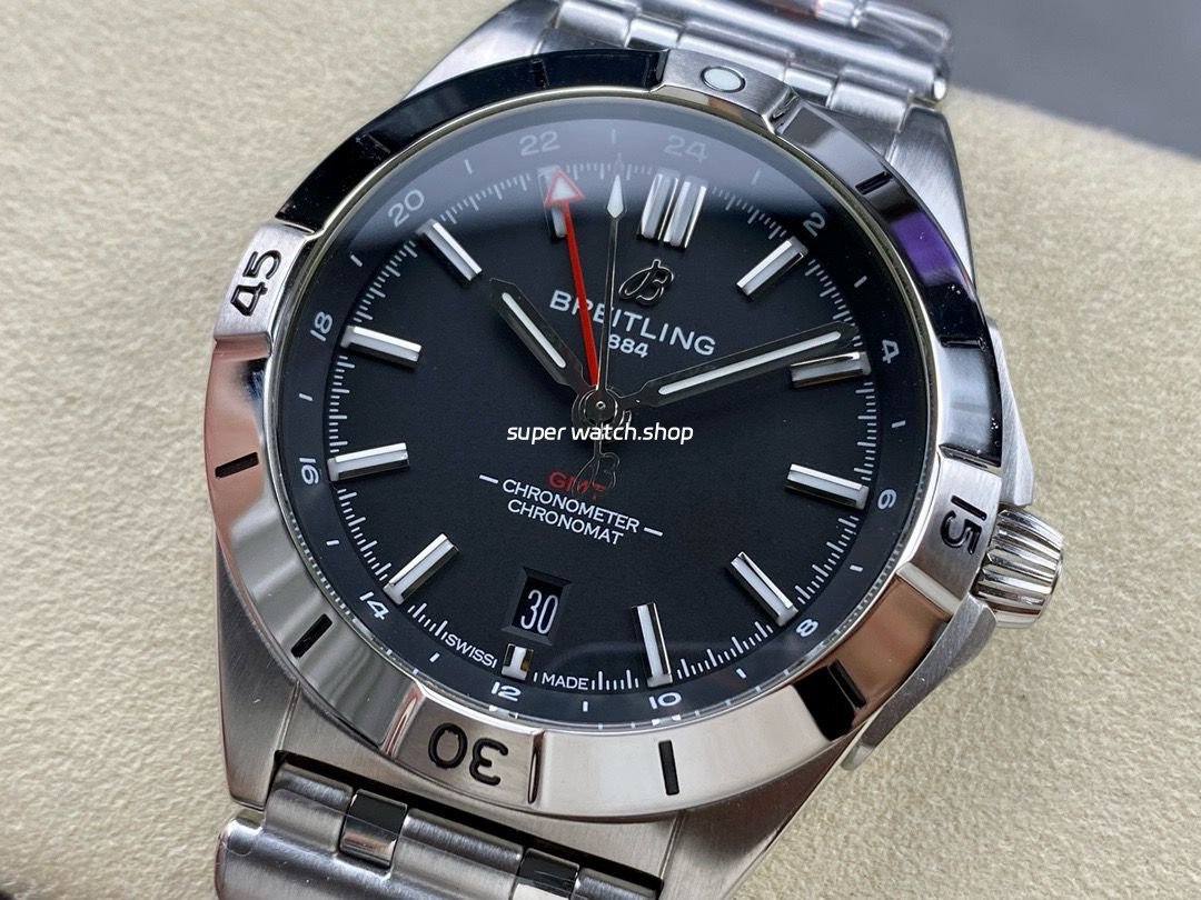 BLS Factory Breitling Chronomat GMT A32398101B1A 40mm Red GMT Needle Full Steel Black Dial