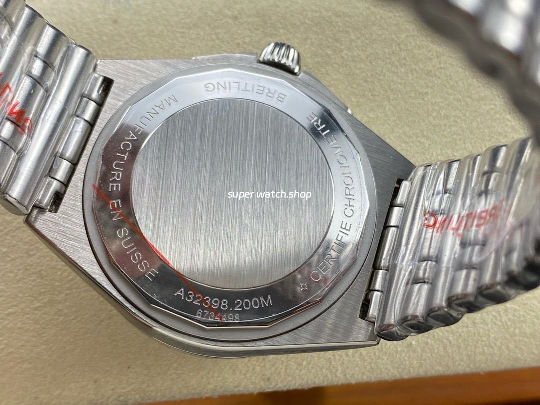 Crafted with a robust stainless steel case and featuring a screw-down crown with double gaskets, this timepiece ensures excellent water resistance. The unidirectional rotating bezel is adorned with Breitling signature 15-minute rider tabs,adding a distinctive touch.