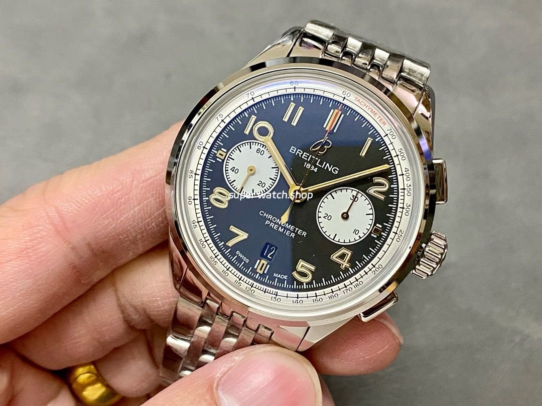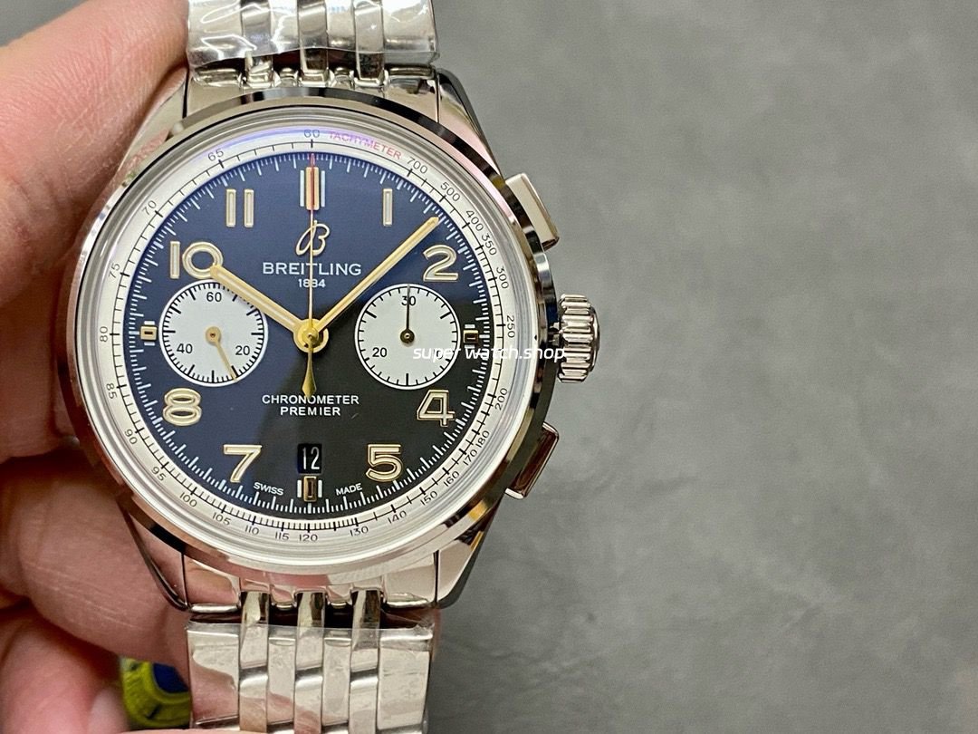 BLS Factory Breitling Premier B01 Chronograph AB0118A21B1A1 42mm Full Steel White Eye Black Dial
