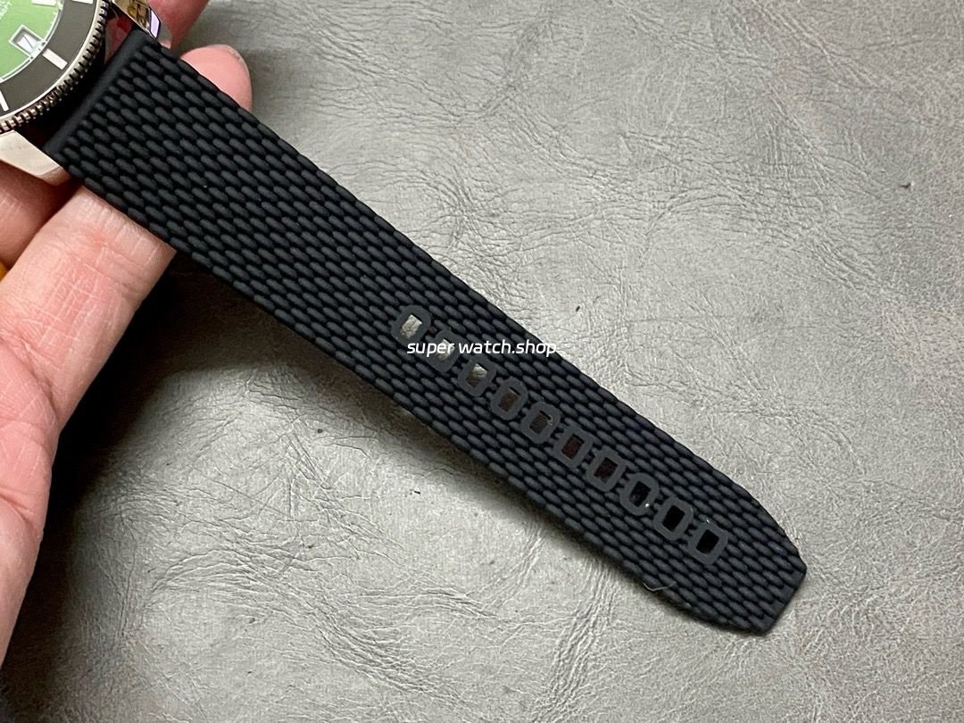 The watch comes with a one-to-one replica original natural rubber strap, offering a soft, flexible feel that conforms to the wrist for maximum comfort and durability.
