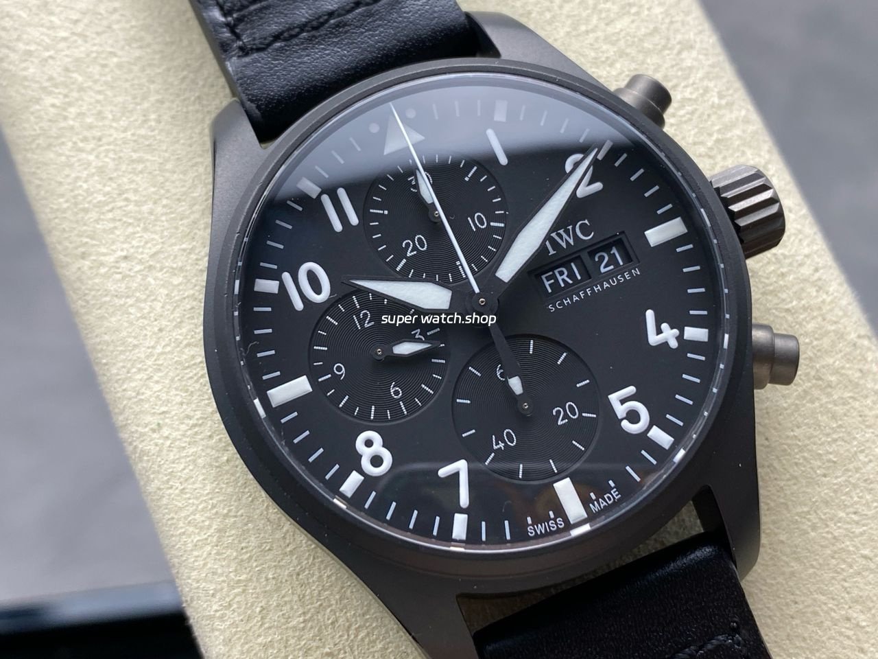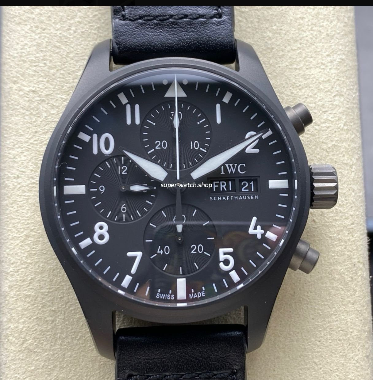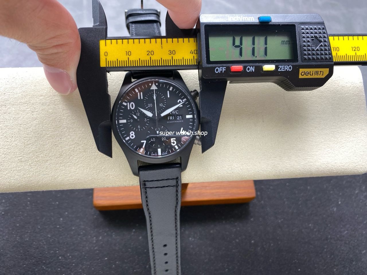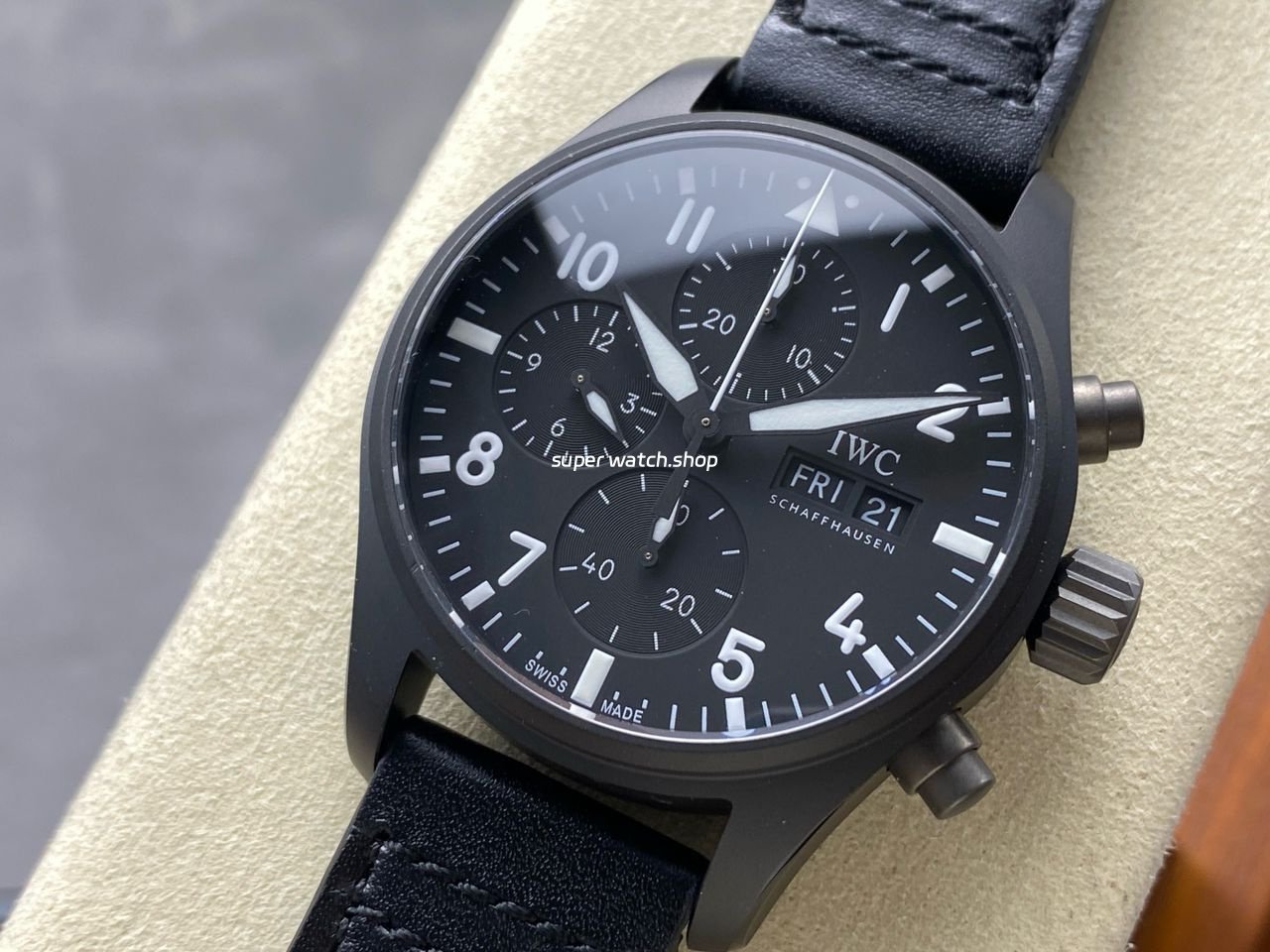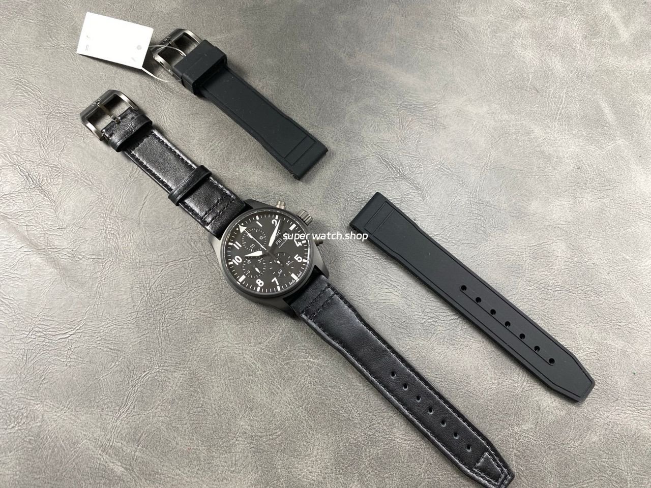 BLS Factory IWC Pilot Chronograph Top Gun IW388106 41mm Leather Strap Black Dial