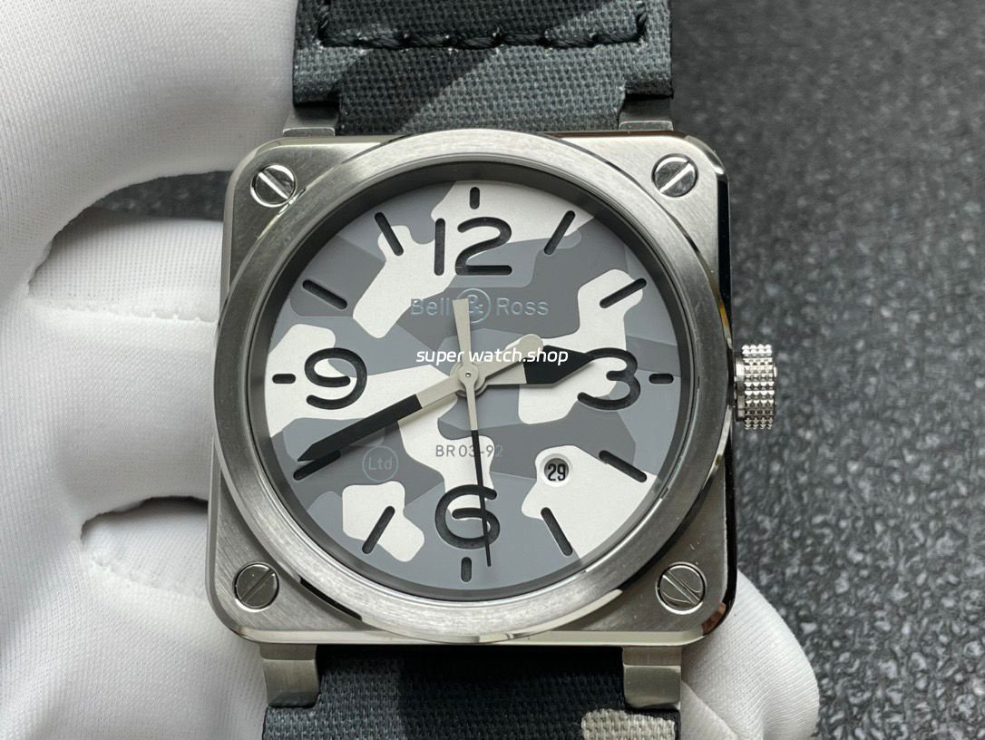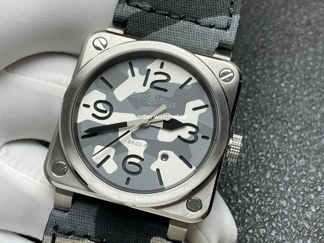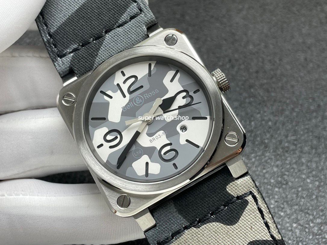 The watch features a 42mm stainless steel square case with sharp, masculine lines, finished with refined brushing and polishing to enhance depth and texture. The classic black dial is designed for maximum legibility, fitted with applied metal numerals and hour markers generously filled with Super-LumiNova® luminous material, ensuring exceptional readability even in low-light or nighttime conditions—true to Bell & Ross’s philosophy of function-first design.