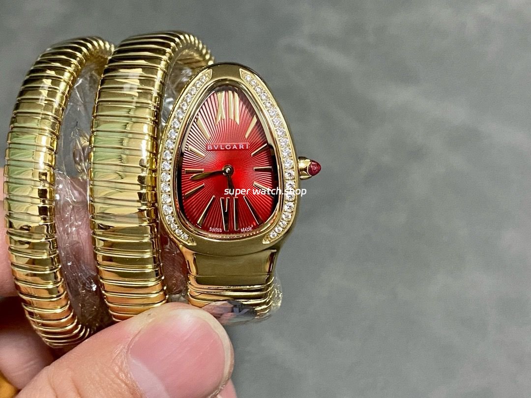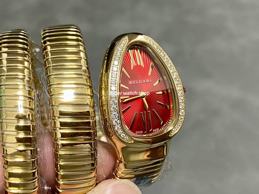 BV Factory Bvlgari Quartz Serpenti 103070 35mm Full Gold Roman Numerals Red Dial