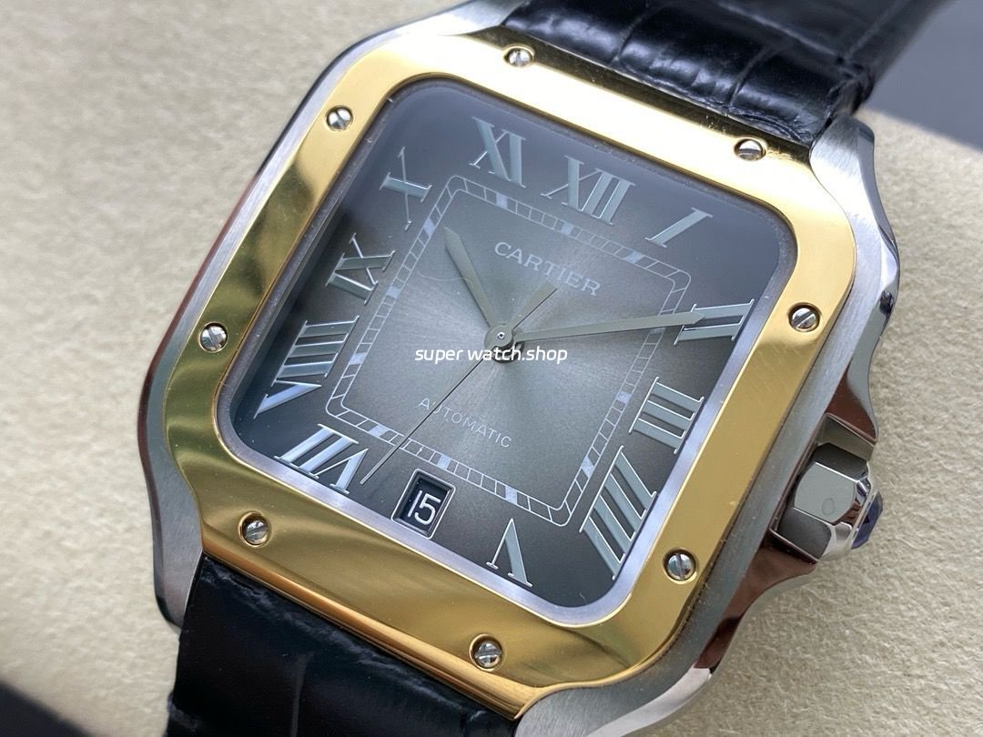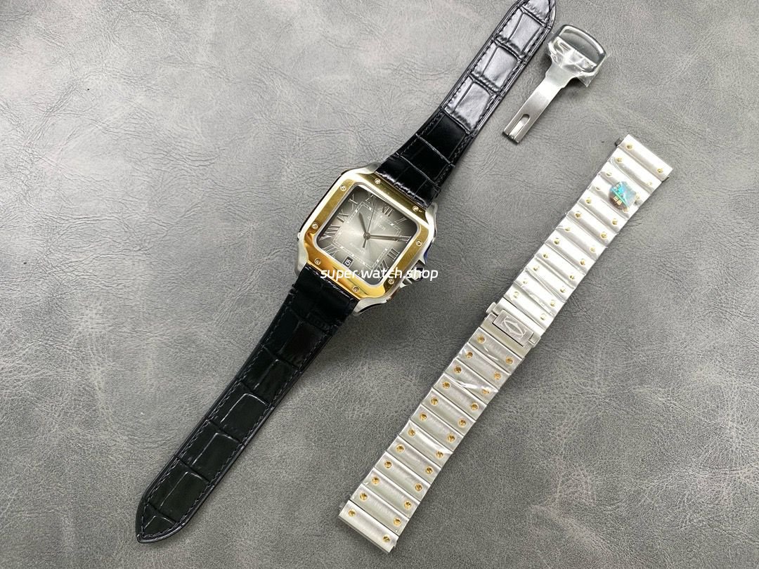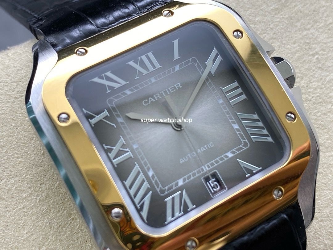BV Factory Cartier Santos W2SA0030 39.8mm Gold Steel Leather Strap Roman Numerals Grey Dial