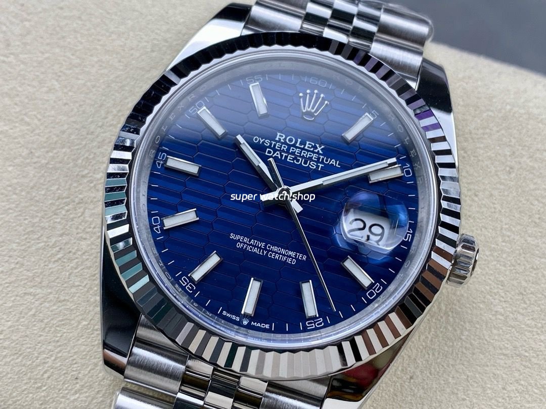 Clean factory Rolex Datejust 126334-0032 41mm Full 904L Fluted Motif Blue Dial Jubilee