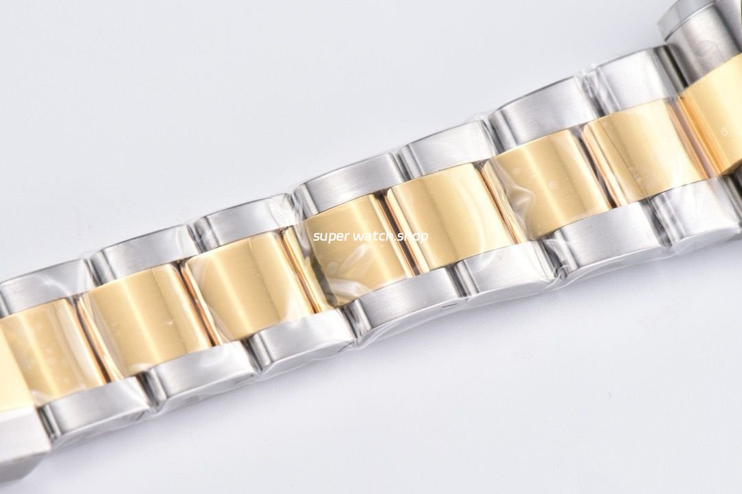 • Hour Markers & Hands: Applied hour markers are polished and filled with Swiss luminous powder, ensuring balanced brightness. The gold-finished hands are finely polished with no rough edges, delivering an authentic Rolex shine.