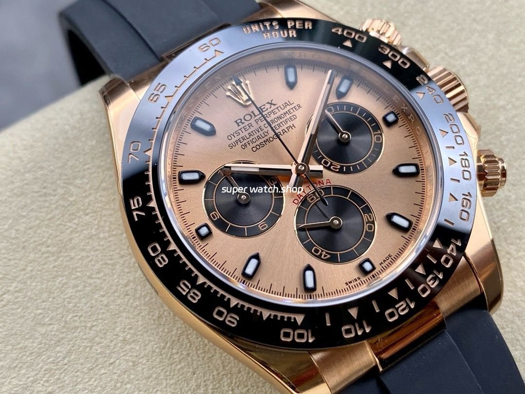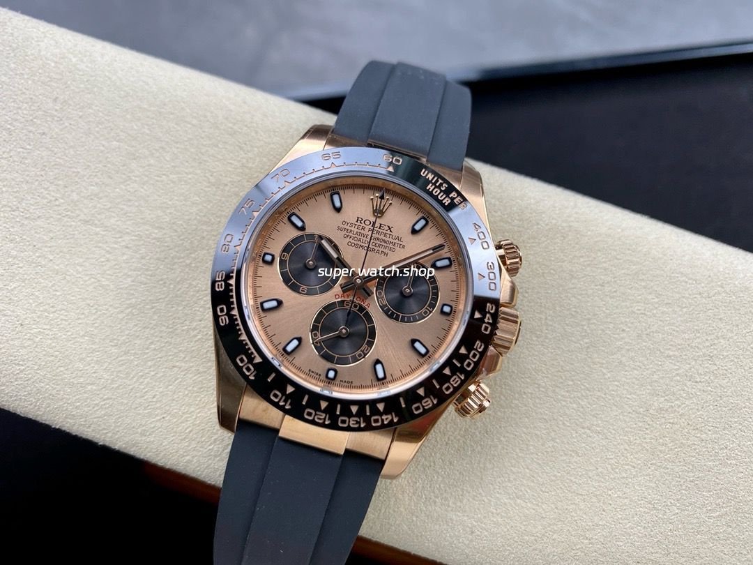 The Clean Factory Rolex Daytona 116515LN is regarded as the finest Everose gold ceramic bezel Daytona replica on the market. From its 904L case with Everose plating to the high-fidelity ceramic bezel and the functional 4130 movement, every detail demonstrates top-tier craftsmanship. Whether for collection or daily wear, it is the ultimate choice among luxury replica watches.
