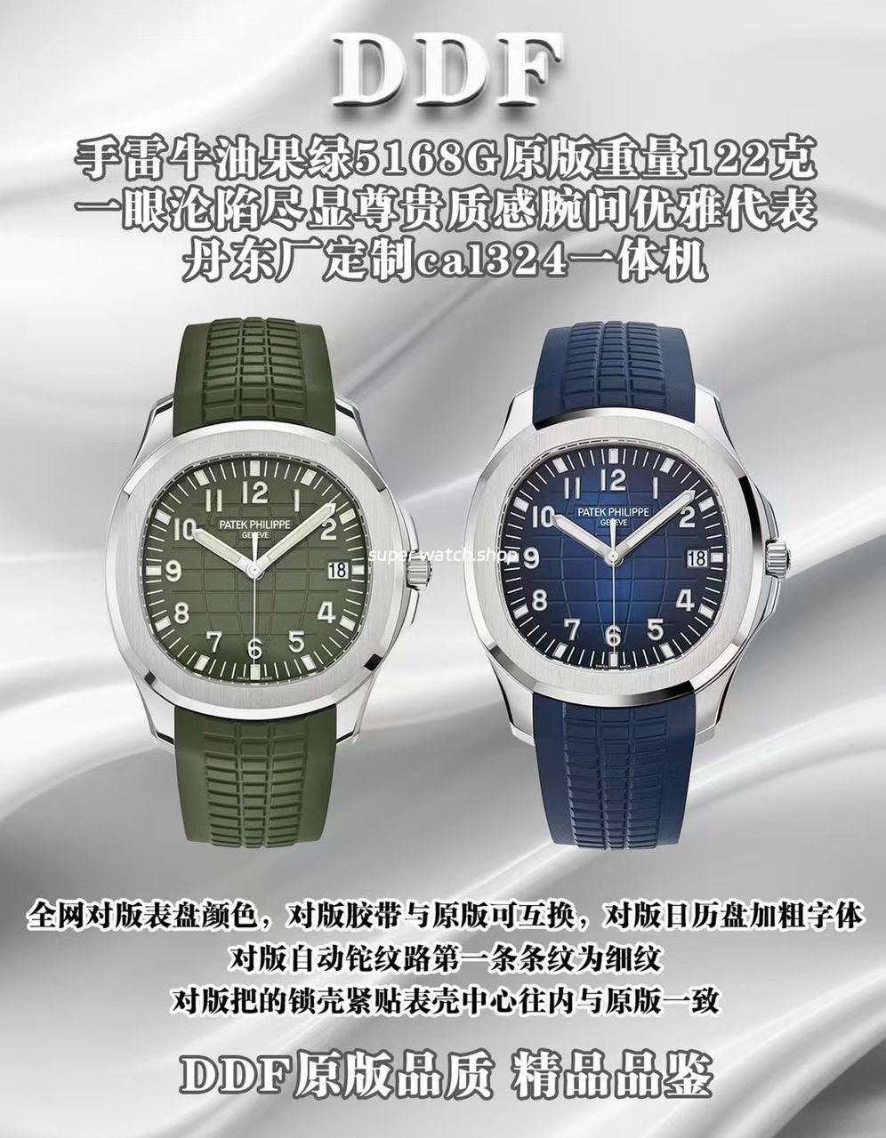 DDF Factory proudly presents the Patek Philippe Aquanaut 5168G “Avocado Green” dial edition, crafted with 1:1 original mold data. With a total weight of 122 grams, this timepiece delivers the same precious-metal heft as the authentic model, bringing a luxurious wearing experience. Equipped with the exclusive Dandong Cal.324 integrated movement, all components and specifications are fully interchangeable with the genuine watch, redefining the standard of top-tier replication.