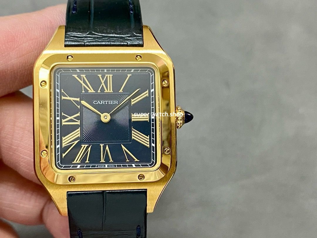 F1 Factory Cartier Santos Dumont WGSA0077 31.4mm Yellow Gold Leather Strap Roman Numerals Black Dial