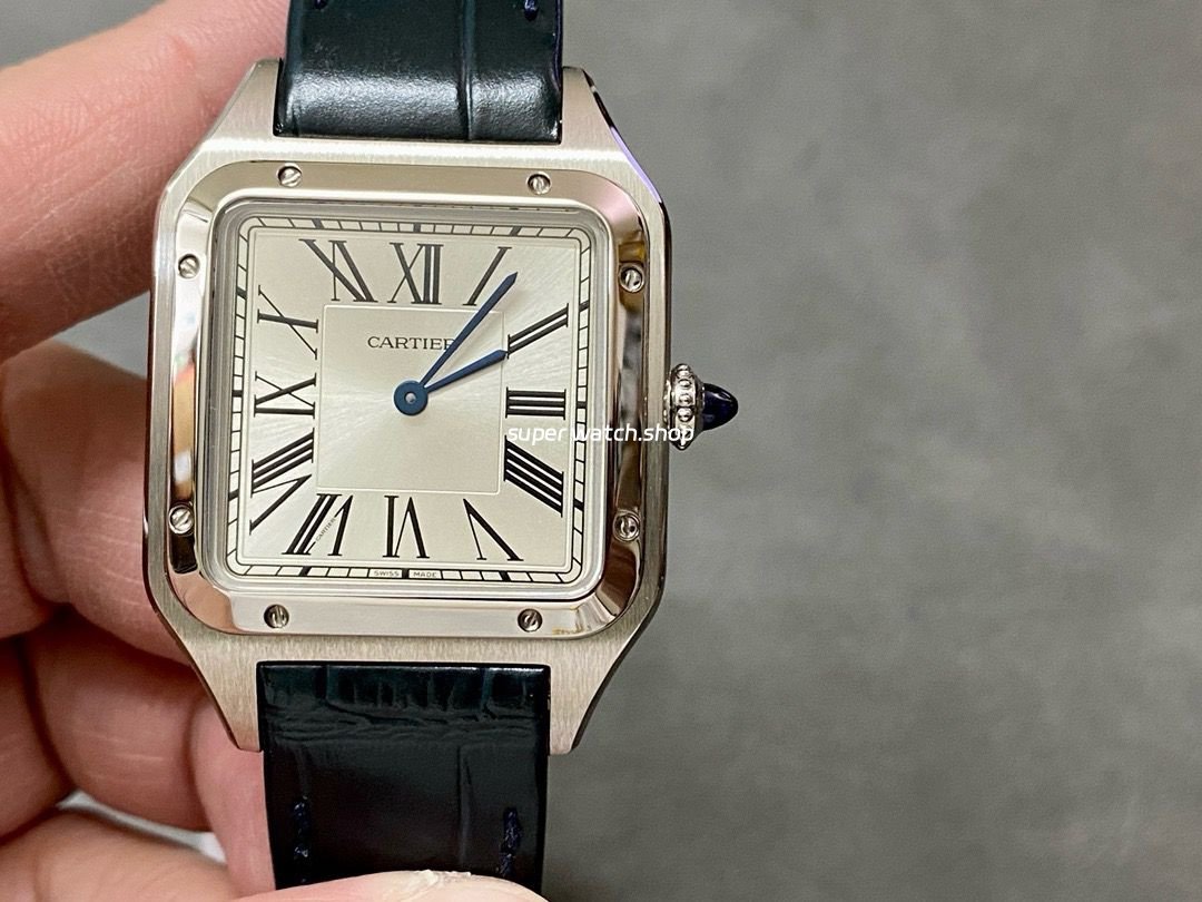 F1 Factory Cartier Santos Dumont WSSA0022 31.4mm Steel Leather Strap Roman Numerals Silver Dial