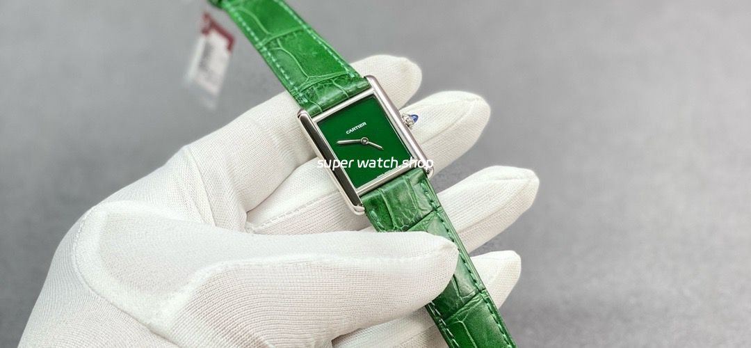 F1 Factory Cartier Tank Louis Cartier WSTA0056 25.5mm Steel Leather Strap Green Dial