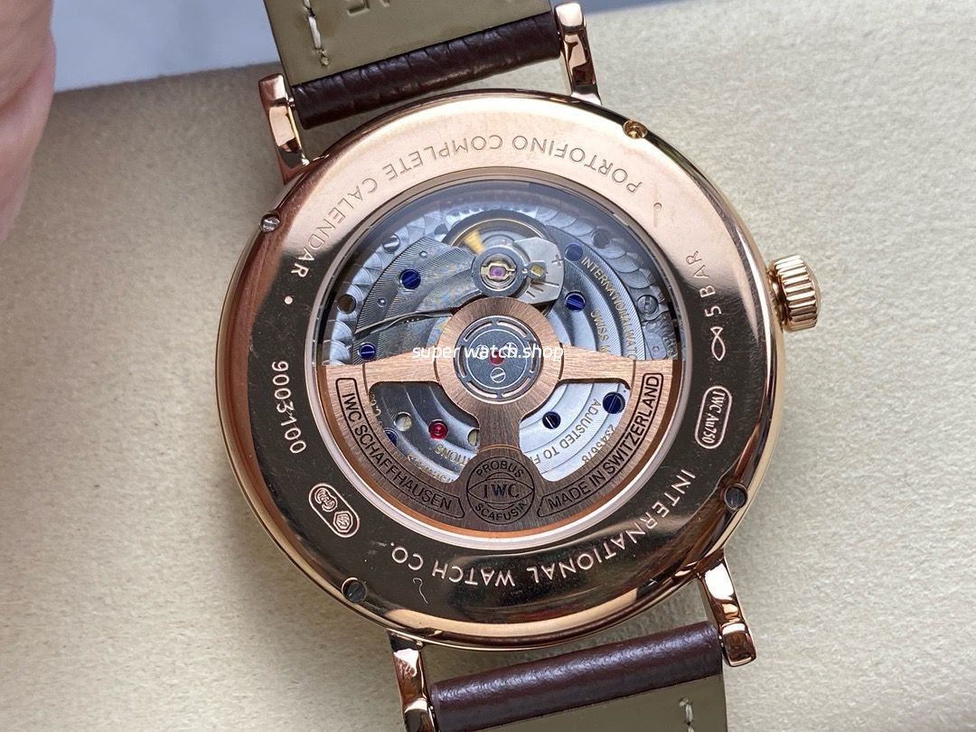 GR Factory IWC Portofino Complete Calendar 41mm Rose Gold Leather Strap Blue Dial