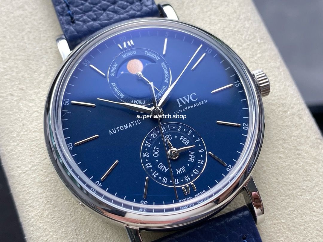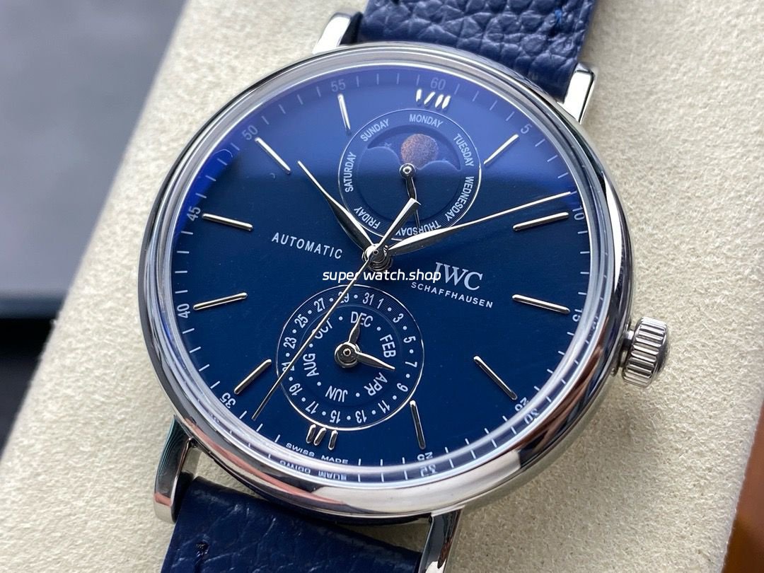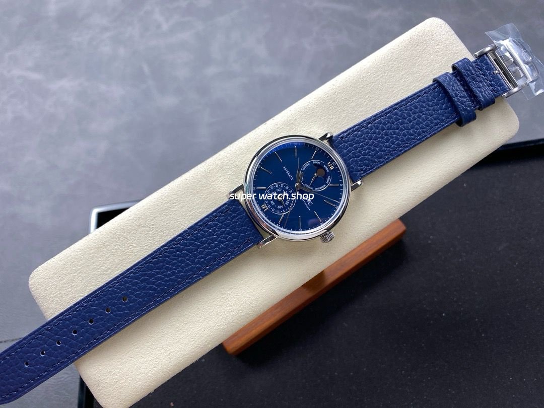 GR Factory IWC Portofino Complete Calendar 41mm Steel Leather Strap Blue Dial