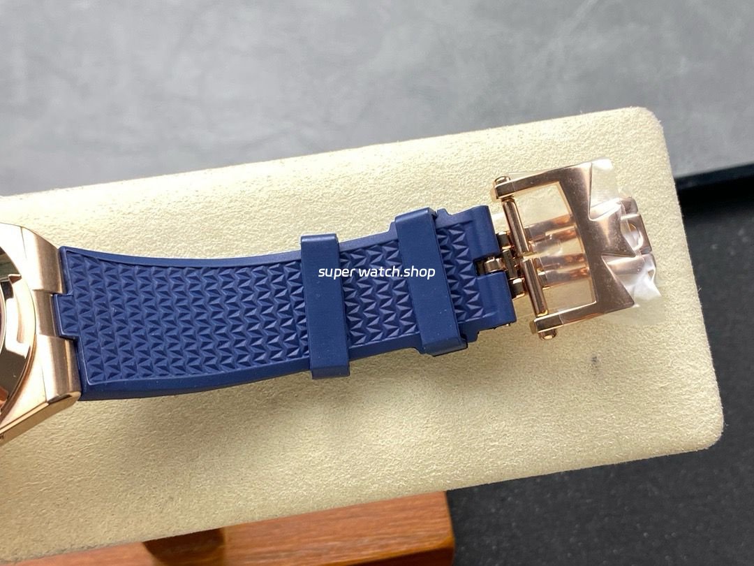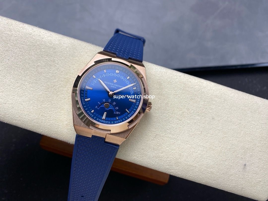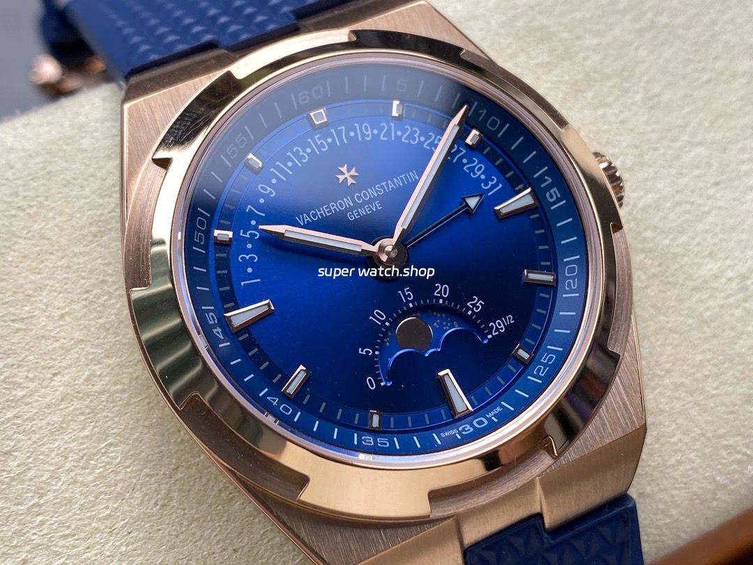 GR Factory Vacheron Constantin Moonphase Retrograde Date Overseas 41mm Rose Gold Blue Rubber Strap Blue Dial
