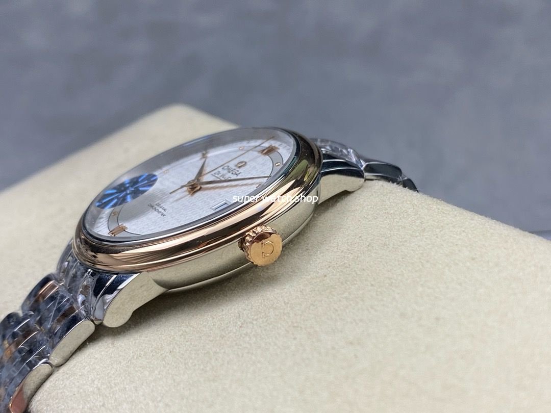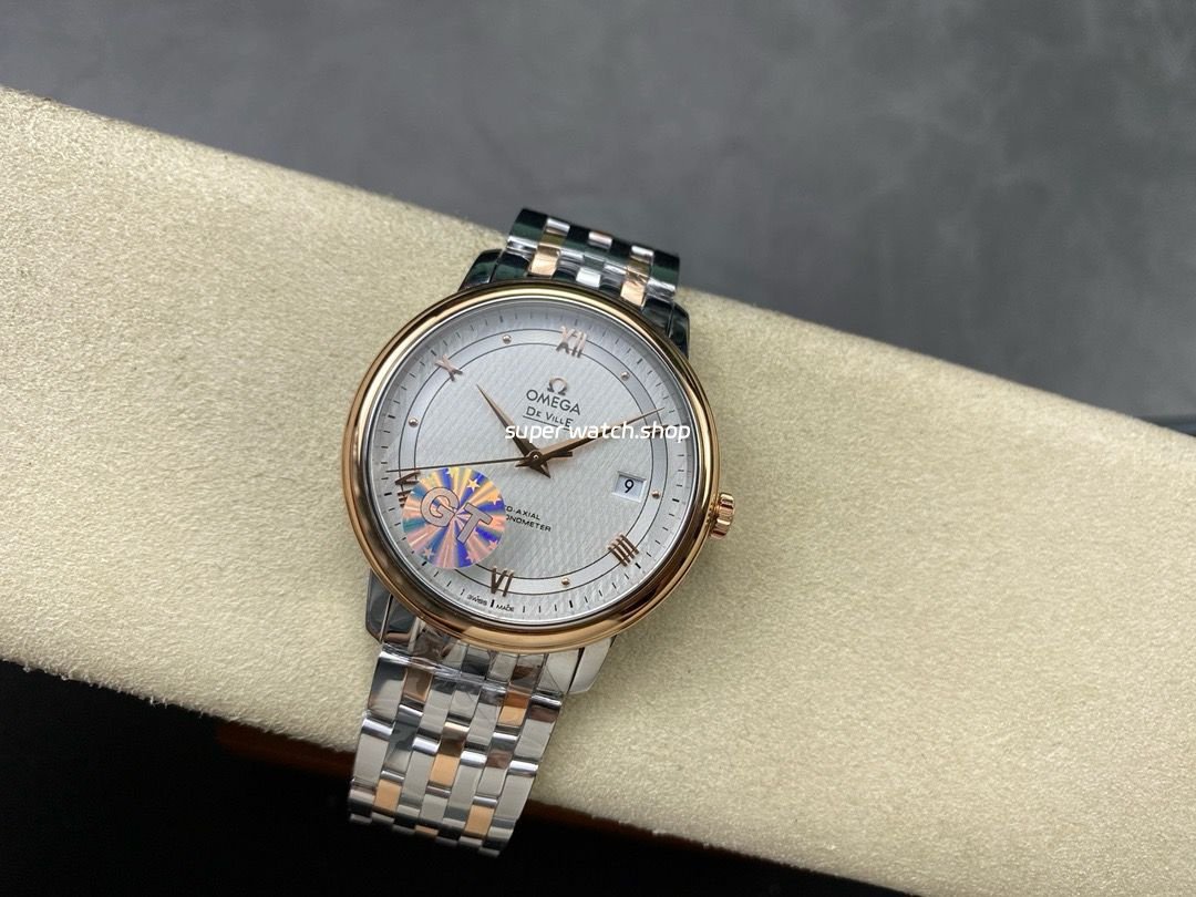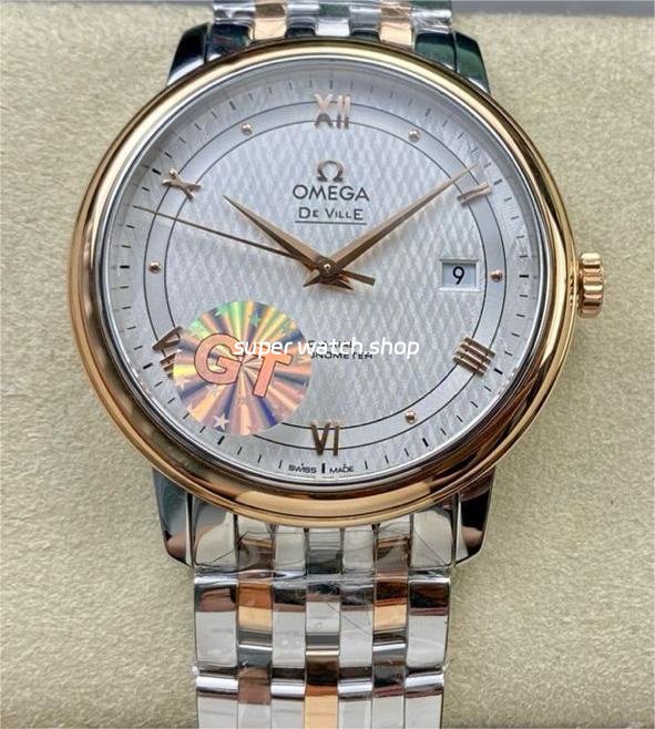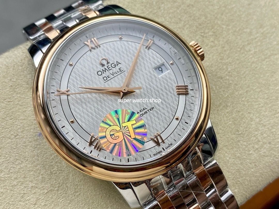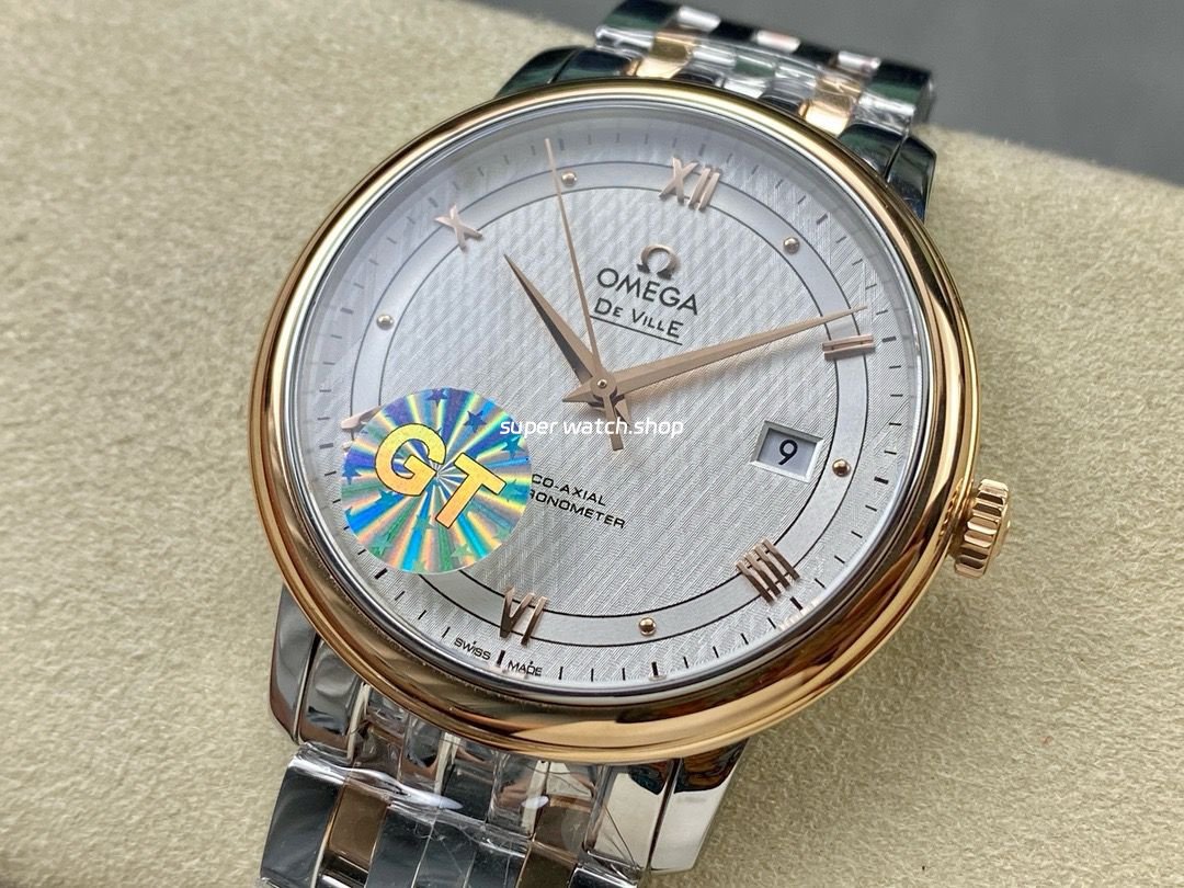 GT Factory Omega De Ville Prestige 424.20.40.20.02.003 39.5mm Half Gold Steel Gold Roman Number Silver Web Weaving Dial