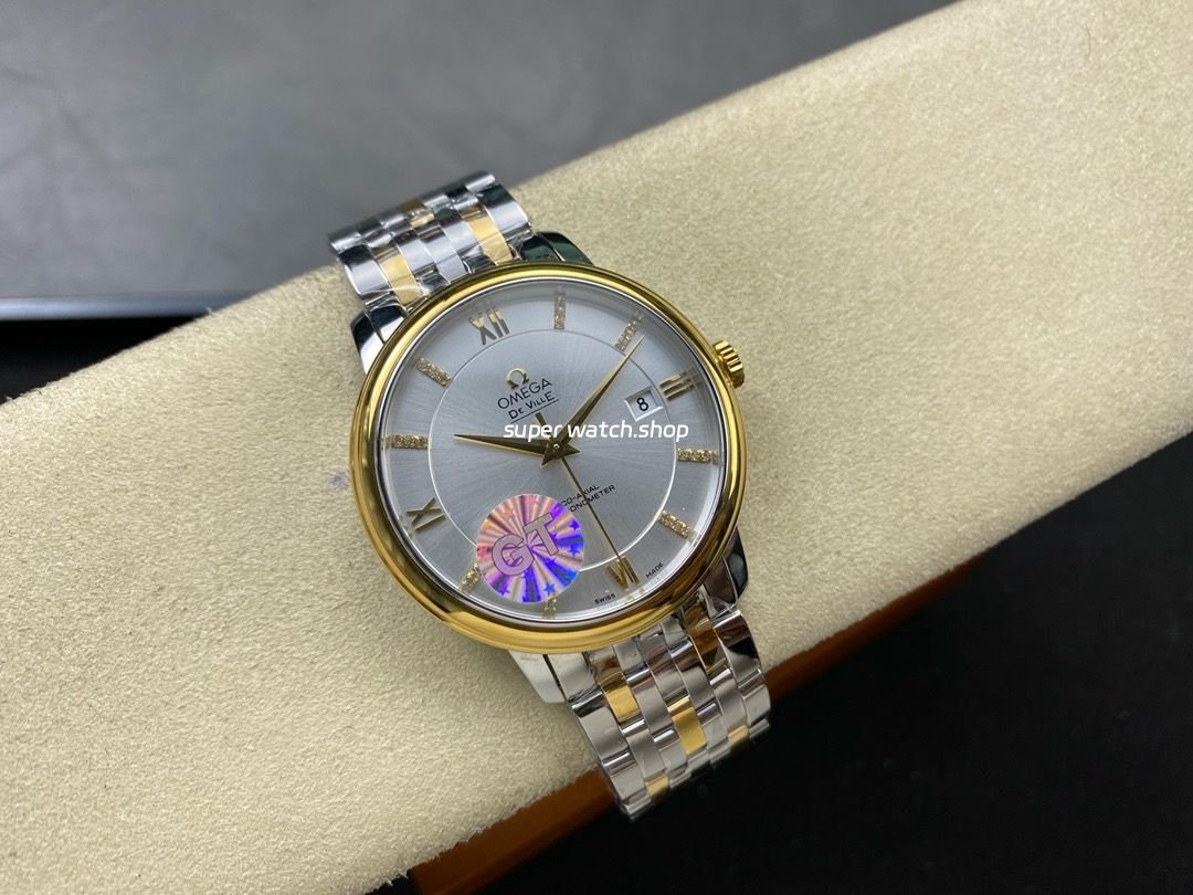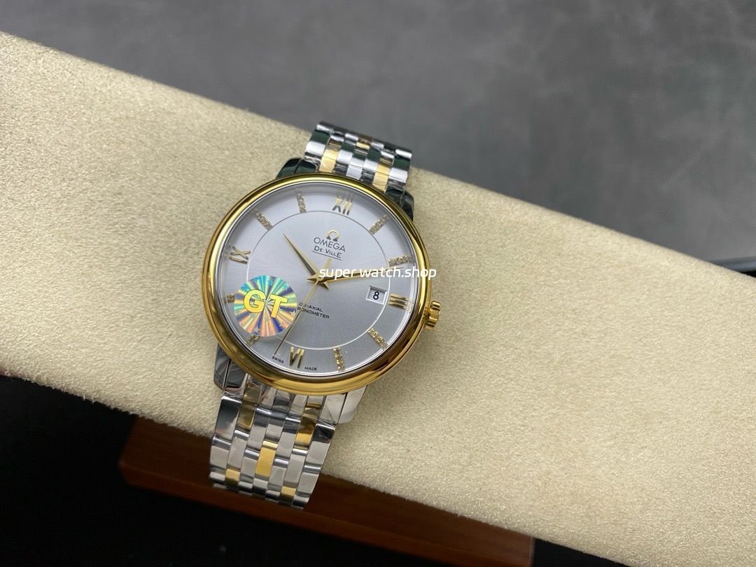 GT Factory Omega De Ville Prestige 424.53.40.20.52.001 39.5mm Half Gold Steel Gold Roman Number Silver Dial