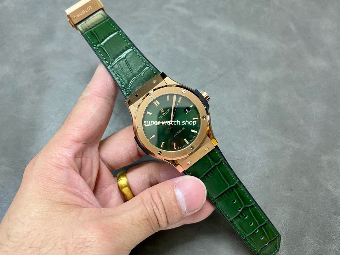 HB Factory Hublot Classic Fusion 542.OX.8980.LR 42mm Rose gold Rubber Strap Green Dial