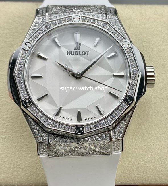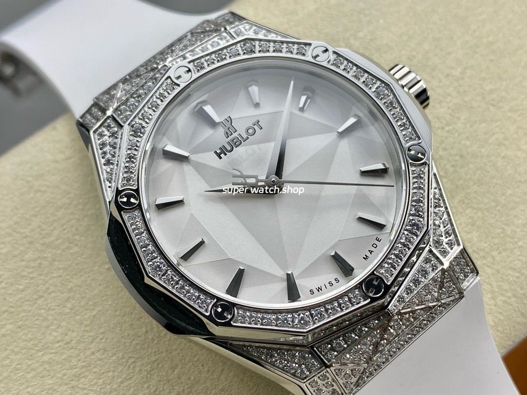 HB Factory Hublot Classic Fusion 550.NS.2200.RW.1804.ORL20 40mm Diamond Steel White Rubber Strap White Dial