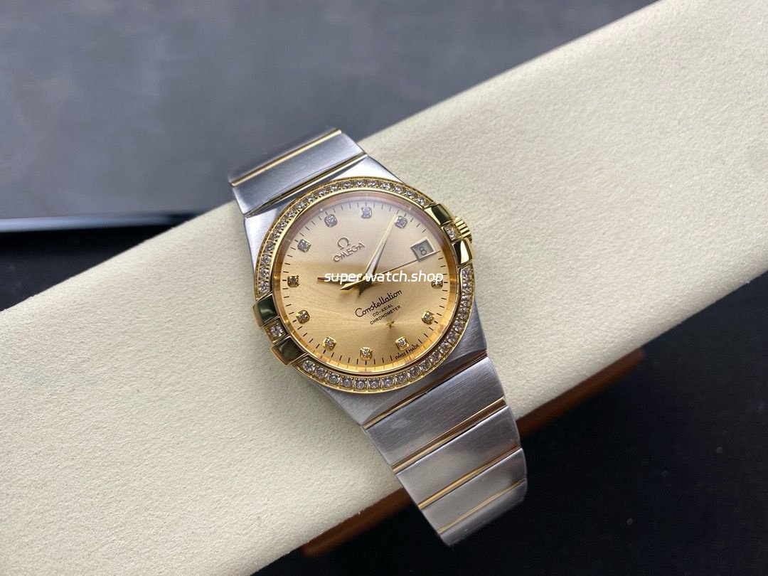 OM+ Factory Omega Constellation Men 123.25.38.21.58.001 38mm Diamond Bezel Gold Steel Diamond Champagne Dial