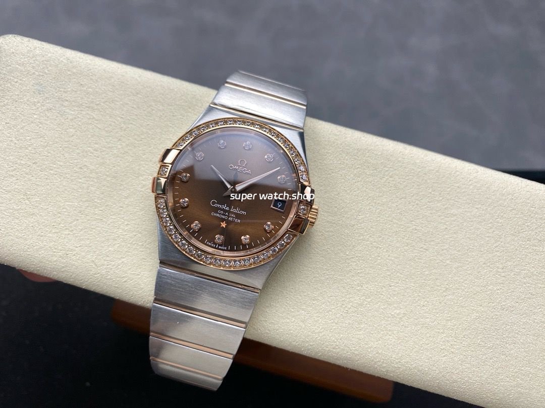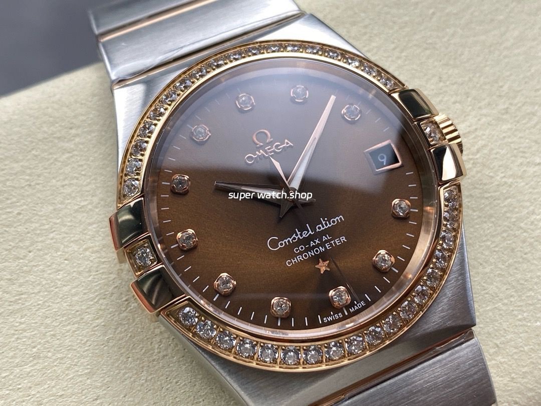 OM+ Factory Omega Constellation Men 123.25.38.21.63.001 38mm Diamond Bezel Rose Gold Steel Diamond Brown Dial
