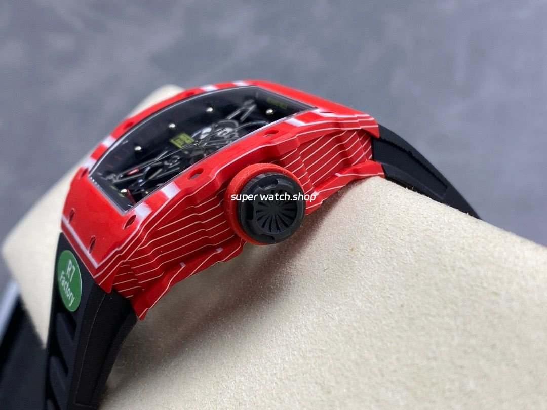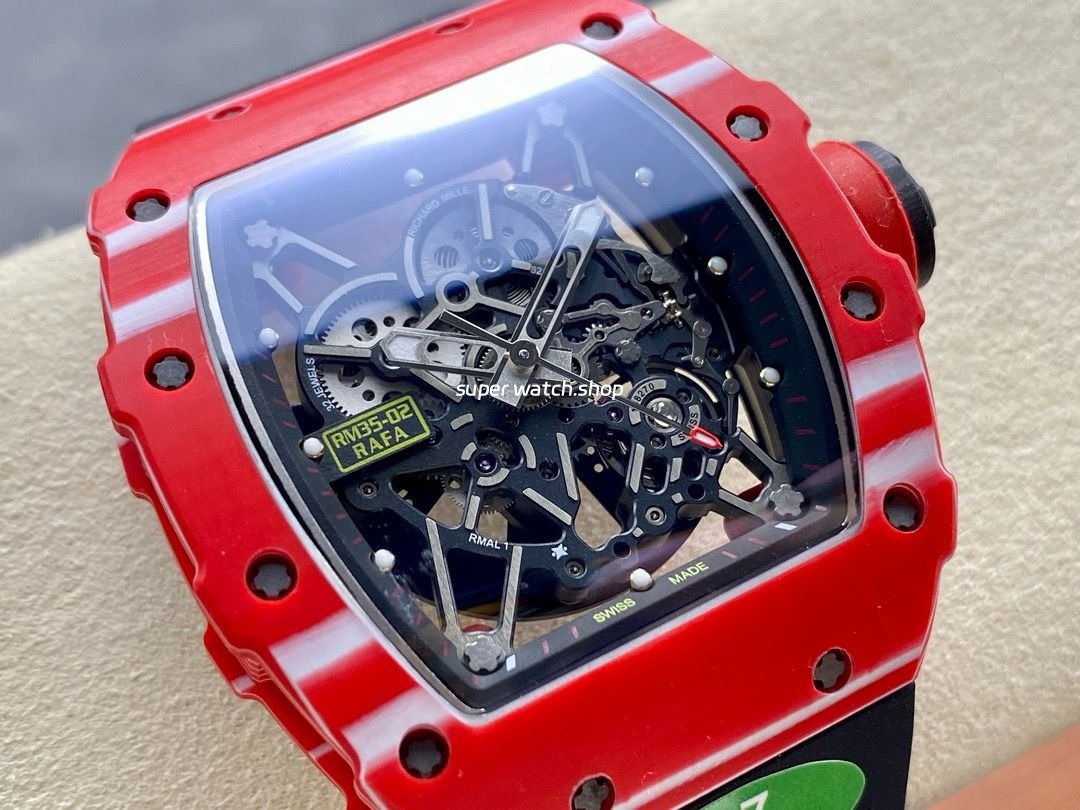 R7 Factory Richard Mille RM35-02 44.5mm Red Carbon Fiber Black Rubber Strap Skeletonized Dial