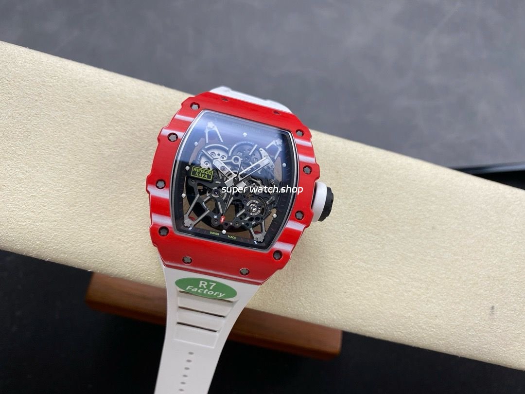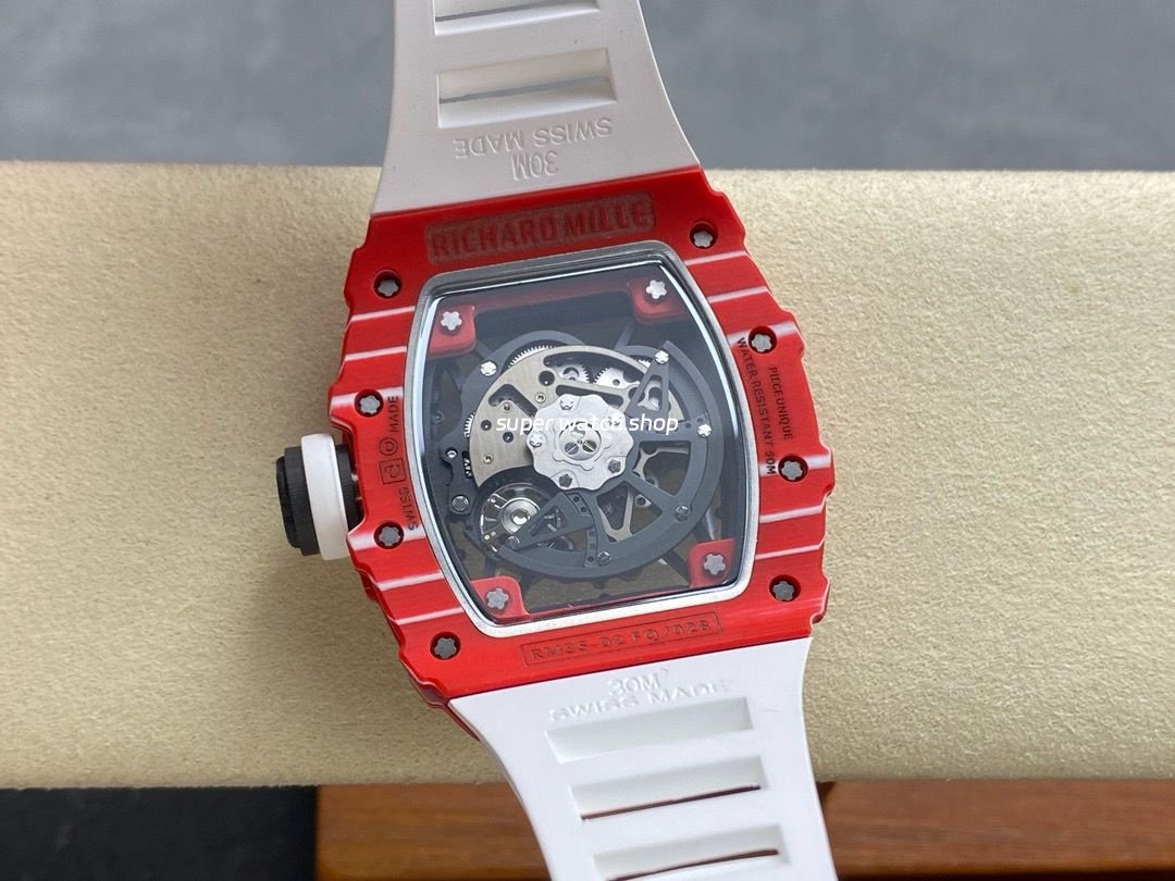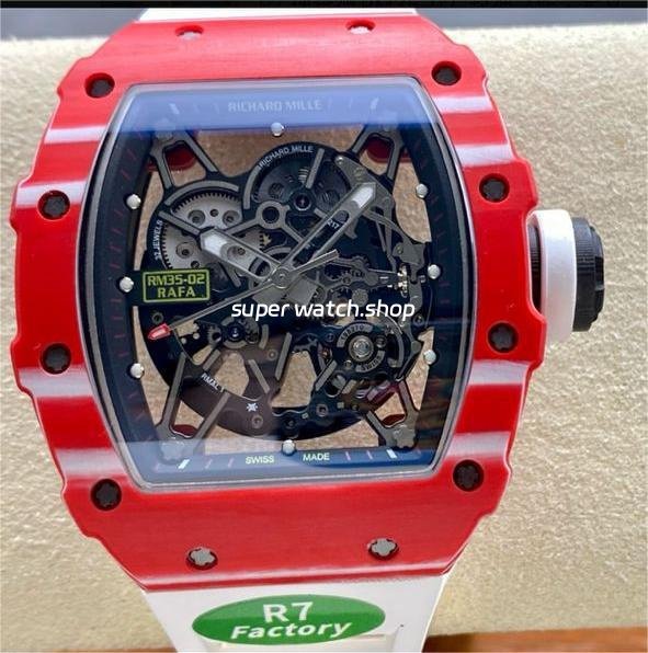 R7 Factory Richard Mille RM35-02 44.5mm Red Carbon Fiber White Rubber Strap Skeletonized Dial