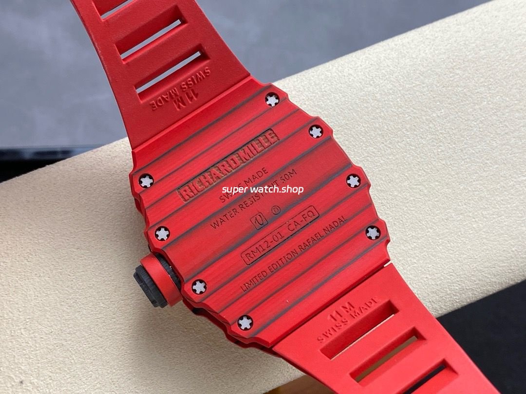 RM Factory Richard Mille RM 12-01 39mm Carbon Fiber Red Rubber Strap Skeletonized Black Dial