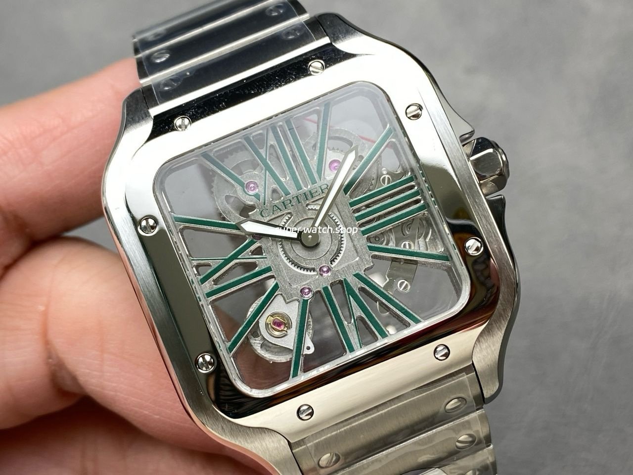THB Factory Cartier Santos WHSA0028 39.8mm Full Steel Green Roman Numerals Skeleton Dial