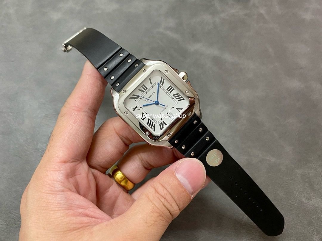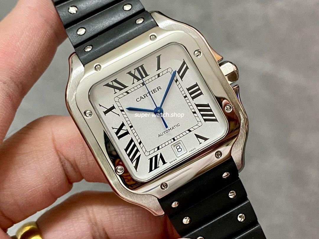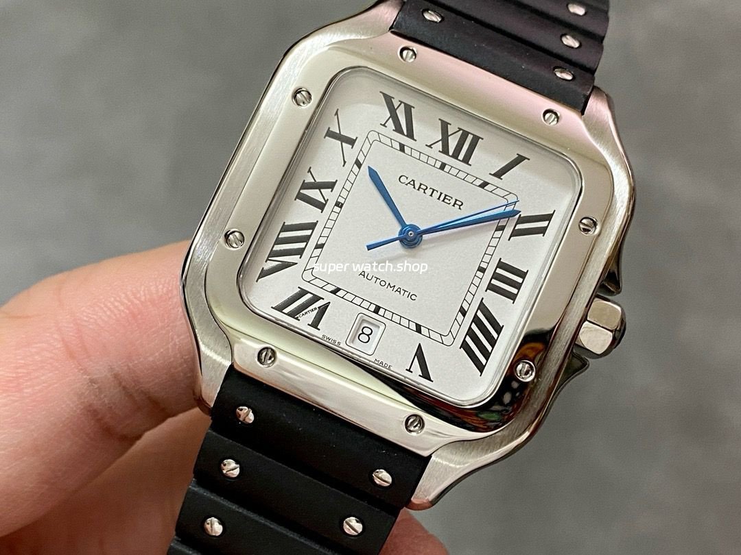 THB Factory Cartier Santos WSSA0018 39.8mm Steel Rubber Strap Roman Numerals Silver Dial