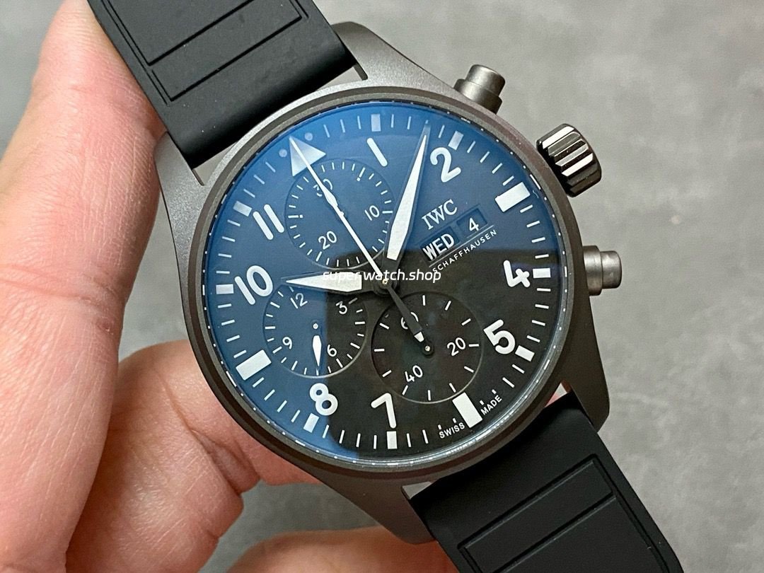 Be the first to review “TW Factory IWC Pilot Chronograph Top Gun IW388106 41mm Titanium Rubber Strap White Arabic Numerals Black Dial”