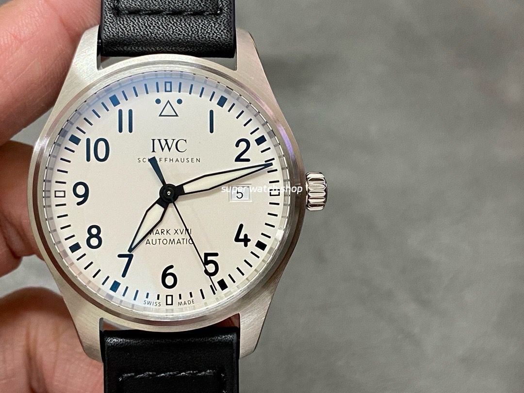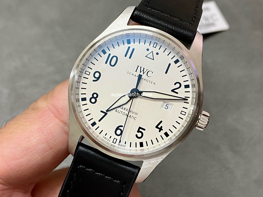V7 Factory IWC Pilot Mark XVIII IW327012 40mm Steel Leather Strap Arabic Numerals White Dial