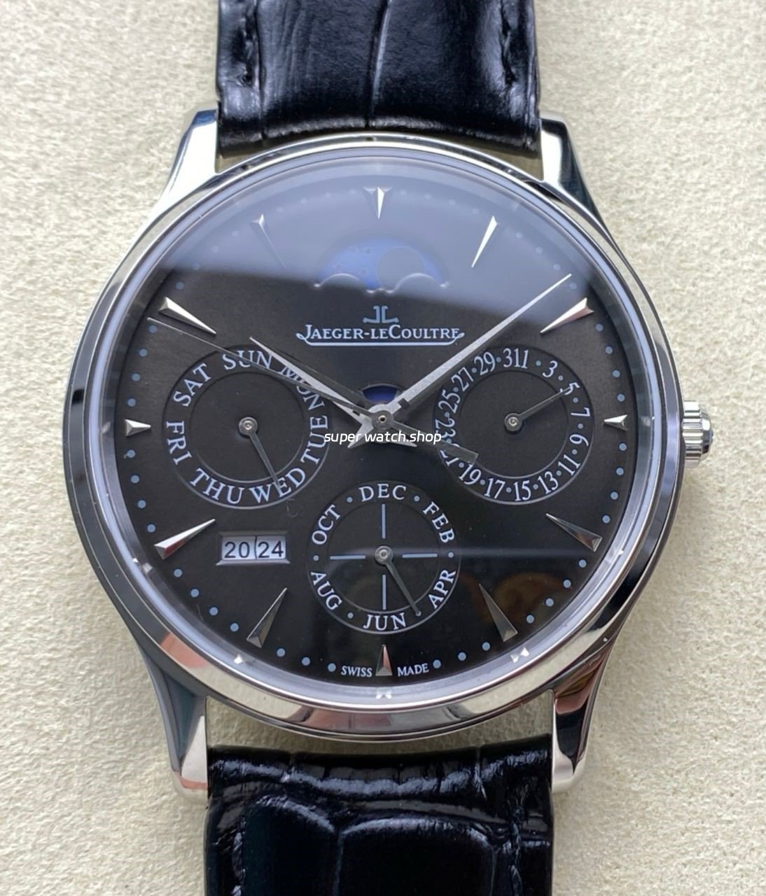VR Factory Jaeger-LeCoultre Master Ultra Thin Perpetual Q130354J 39mm White gold Leather Strap Grey Dial