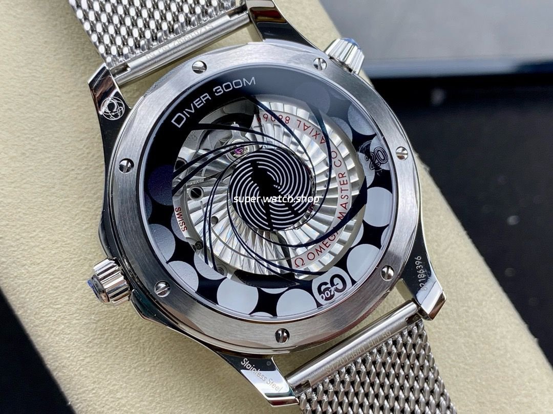 This new Seamaster 300 features a full ceramic dial crafted through high-temperature sintering, mirroring the authentic Omega design. The laser-engraved wave patterns are crisp and dimensional, delivering a deep-sea aesthetic with a luxurious touch.