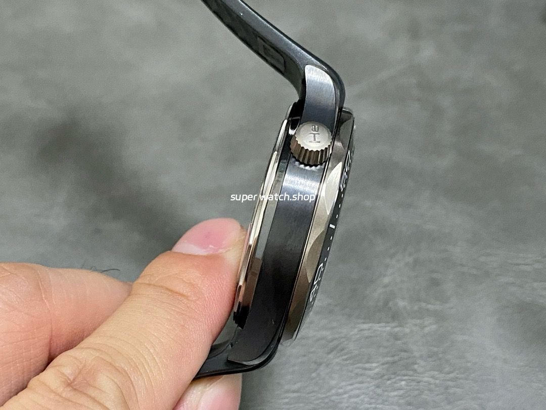 Strap: Fitted with a black rubber strap, soft and comfortable against the wrist, paired with a ceramic buckle. Ideal for both style and water resistance.