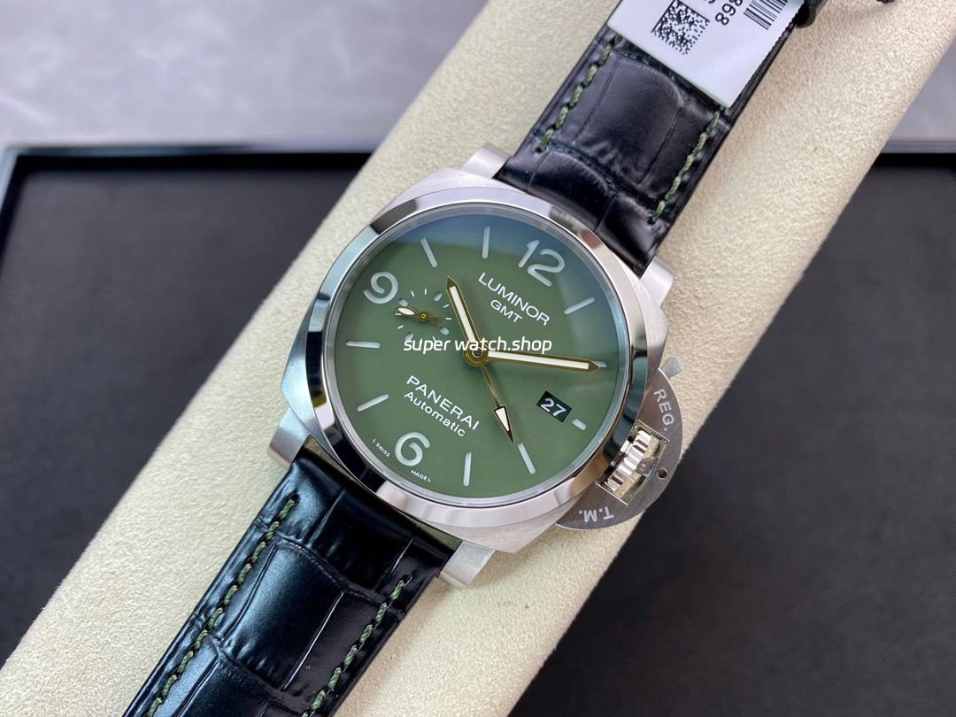 VS Factory Panerai Luminor GMT PAM 01056 44mm Steel Leather strap Green Dial