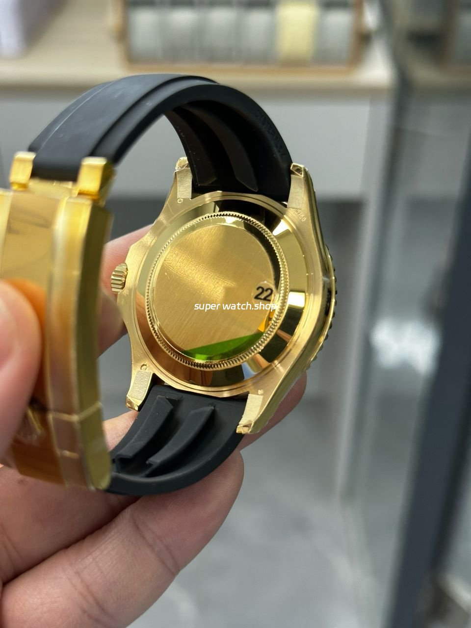 The 226658 features an 18K yellow gold case with a 40mm diameter, mirroring the proportions of the genuine model. The gold tone is carefully tuned for a rich yet refined luster. The case is CNC-machined with multiple polishing processes, achieving sharp edges and a flawless alternation of brushed and polished surfaces. Its matte black ceramic bidirectional rotating bezel is engraved with raised gold numerals, with details that are indistinguishable from the original.